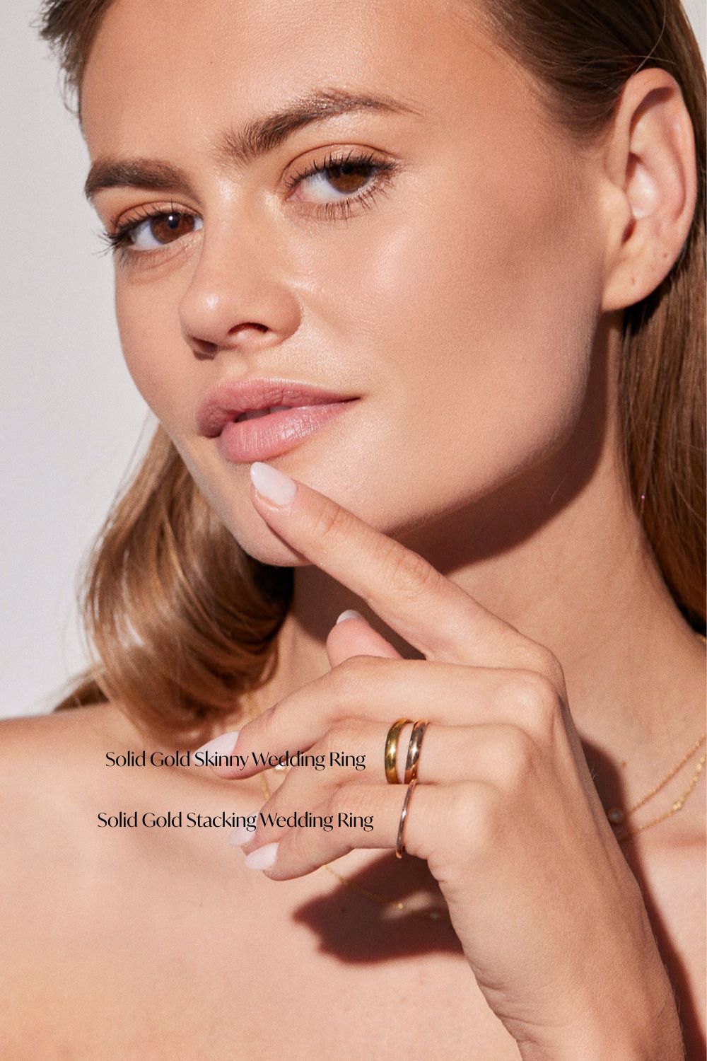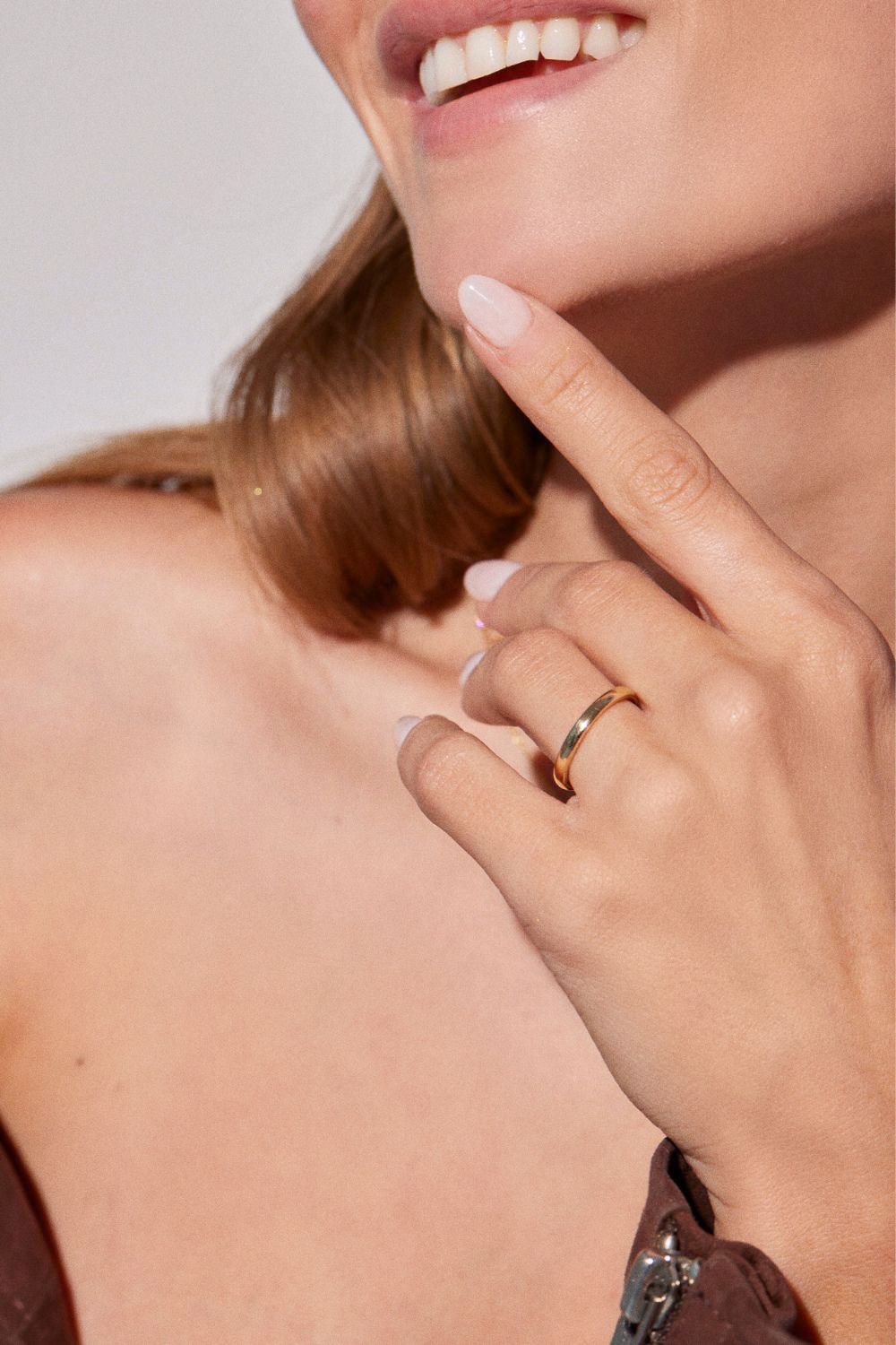 Somewhere between too-skinny and too-chunky we found perfection. Proof, tried and tested by our brides all over the globe that less is more. Her rounded silhouette is contoured from solid gold, comfortable to wear daily in your bridal stack or as a spacer between a diamond sandwich.