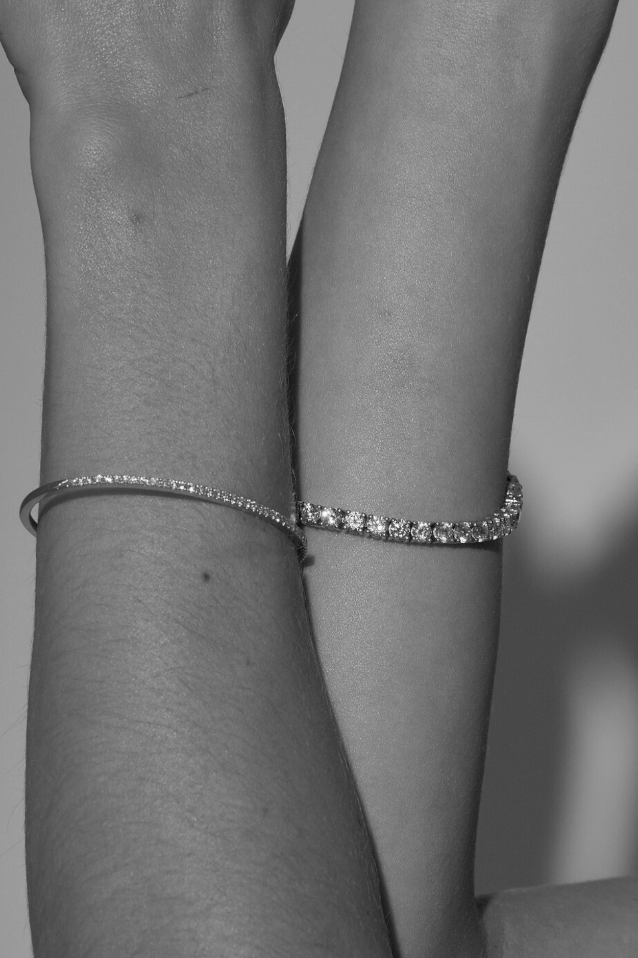 A diamond bangle you never take off, modern heirloom energy, designed to live on your wrist day and night through every adventure.
