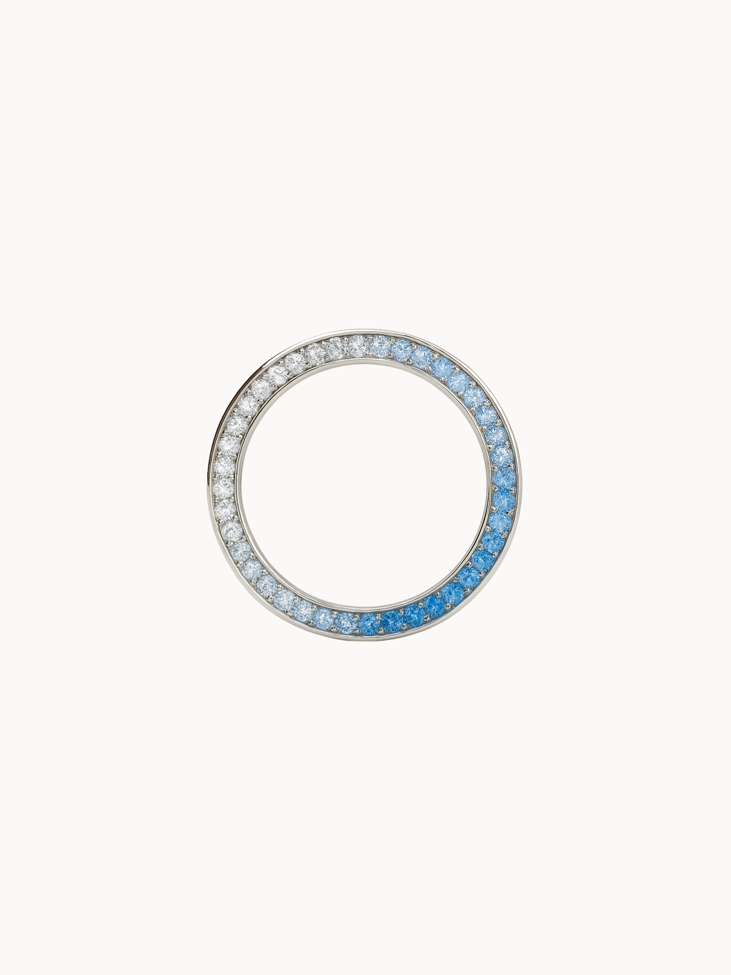 Crafted in platinum, with an assortment and labour of love, a precise and perfect ombre of white and blue diamonds and precious gemstones.