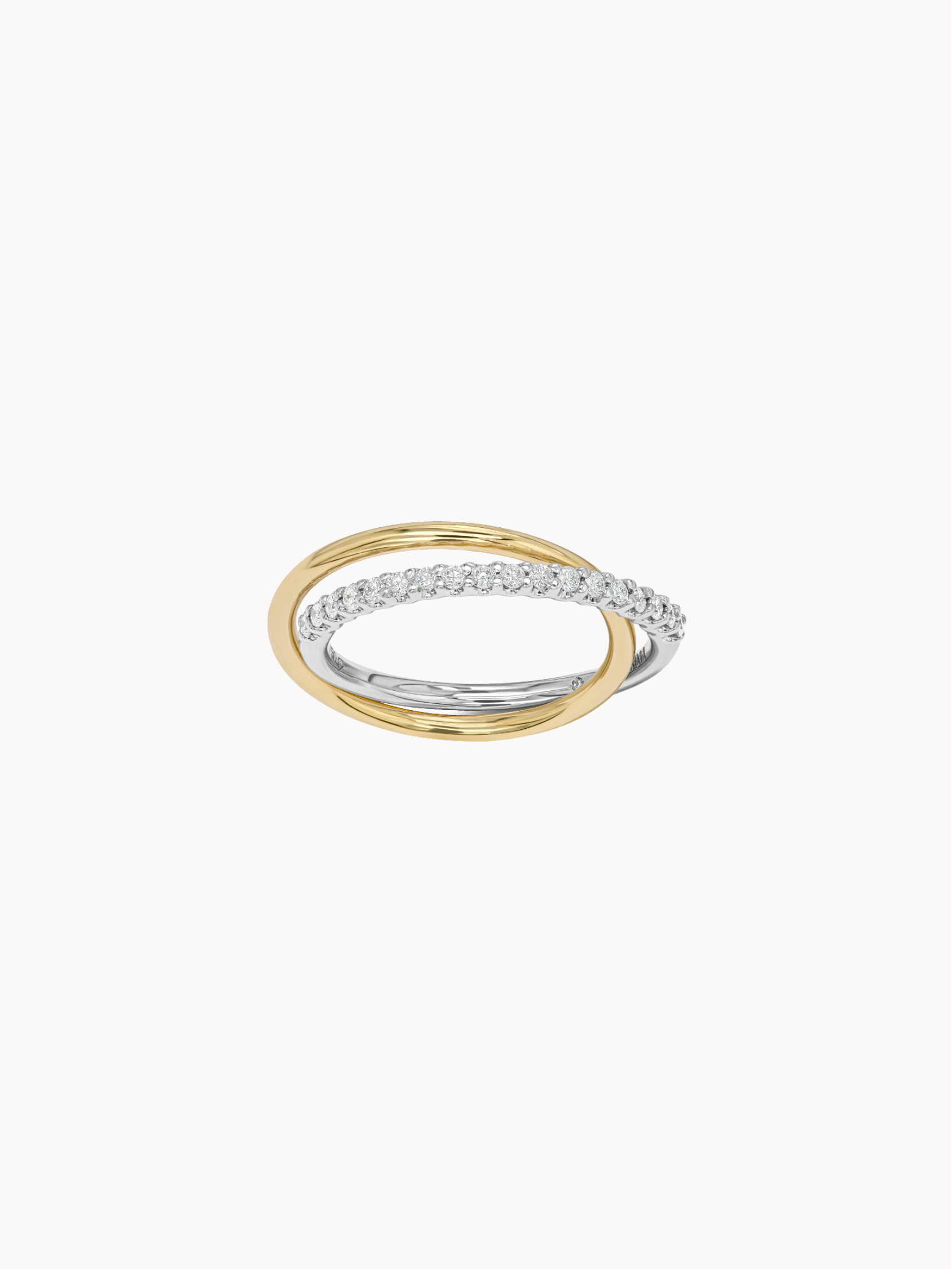 A marriage of minimal and sparkling, Gemima's playfully designed double band intricately crafted with aa solid gold wedding ring and signature skinny diamond band for eternity.